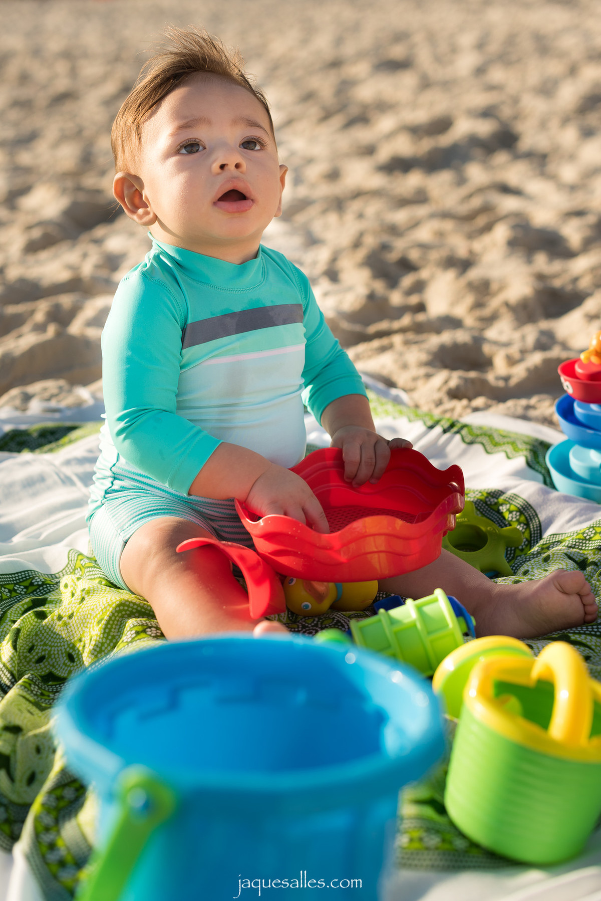 Essa foi a segunda vez que o Joaquim foi a praia e ele ficou super tranquilo contemplando o mar e brincando na areia! E por falar em areia, ele nem se incomodou com ela!