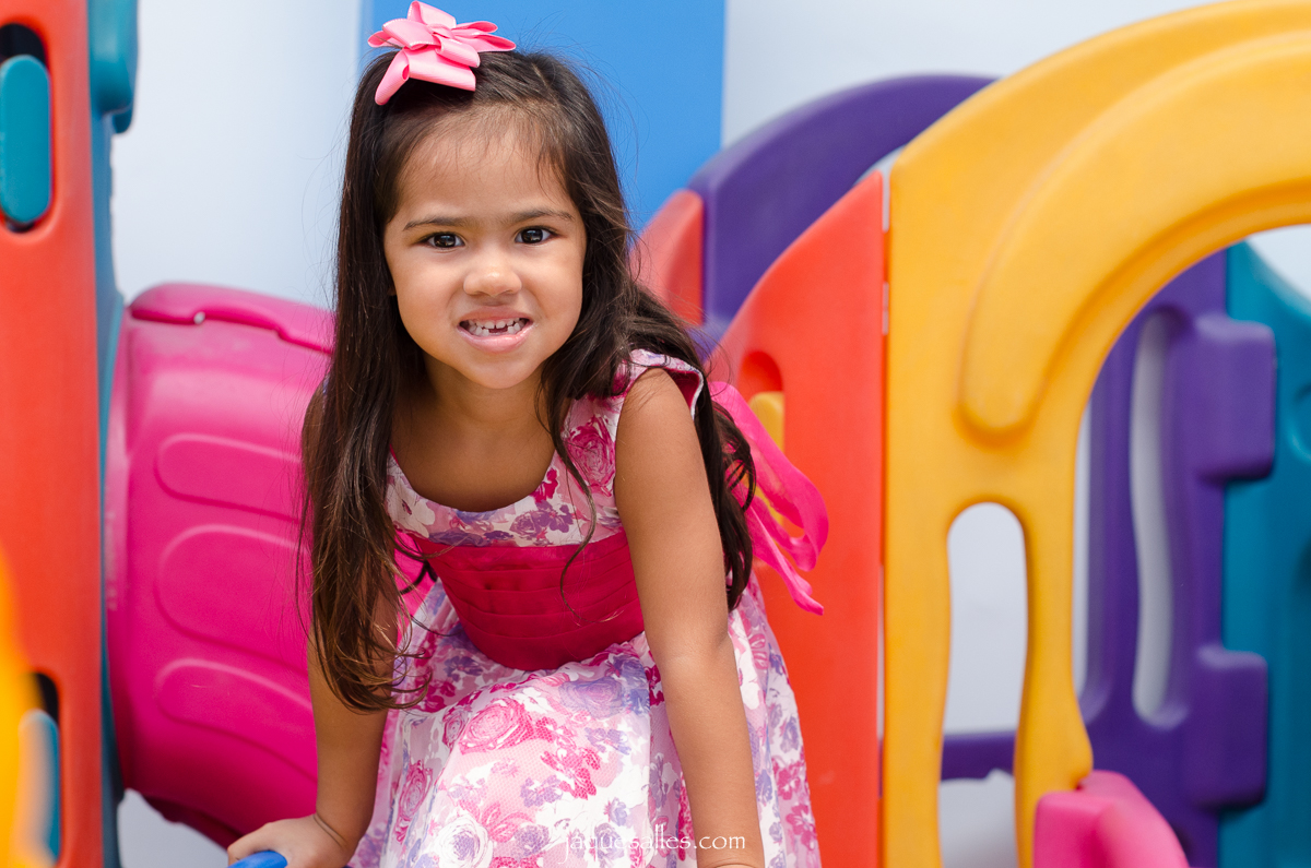 Fotógrafa de festa infantil no rj registra menina fazendo careta para câmera
